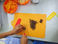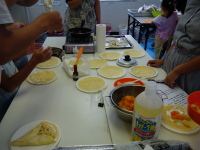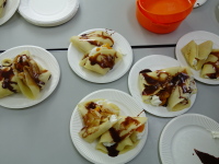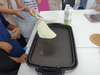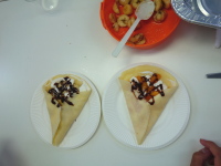 今日は、おいしいクレープ作りです (高須) 2017年8月26日イベントのようすkoi 今日は、みんなでおいしいクレープをつくりました。 生地に生クリームをひいて、みかんやバナナを入れて、外にチョコクリームをトッピングしました。おいしかったですよ。 コメントする