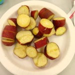 今日はスイートポテトを作りました。たまごをわって、黄身と白身にじょうずにわけて、牛乳とバターと砂糖を一緒にまぜて焼きました。とても、おいしくできましたよ。