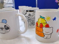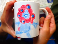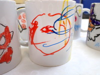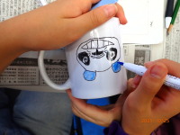 今日は、みんなでマグカップの絵付けをしました。