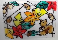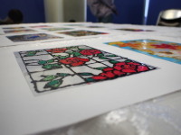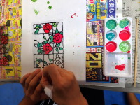 今日は、ガラス絵具を使って、ステンドグラス風写真立てを作りましたよ。