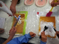 今日は、みんなでロールケーキを作りましたよ。みんなで協力して作ったら、とてもおいしくできましたよ。