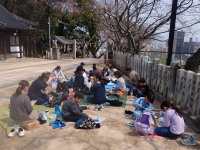 今日は、みんなで花見弁当を作って、近くの神社にお花見に行きましたよ。